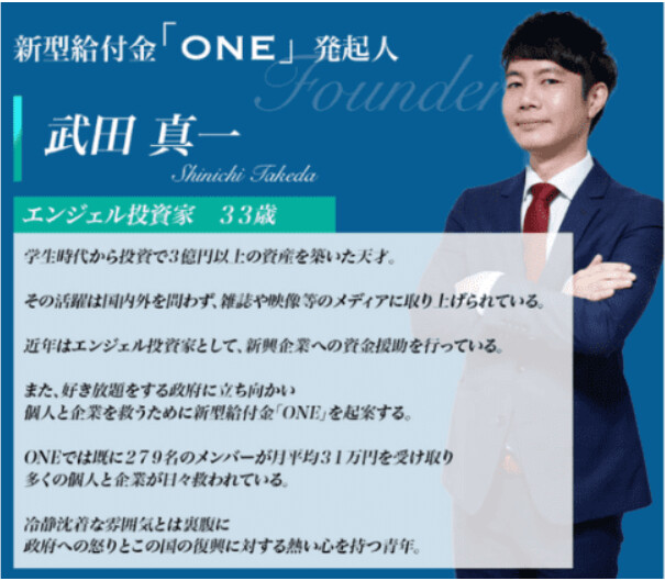 #武田真一の新型給付金ONEは副業詐欺?実態と武田真一の評判…